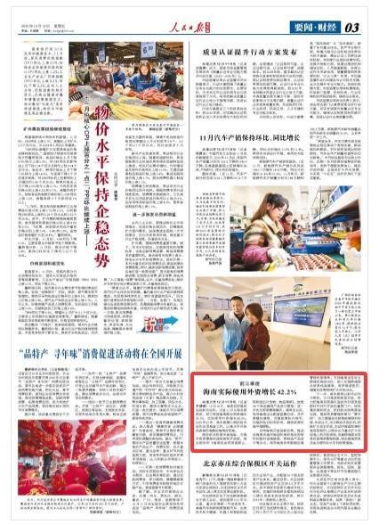 本报北京12月11日电(记者罗珊珊)12月18日,海南自贸港将启动封关运作。记者11日从商务部获悉,前三季度海南服务贸易增长23.1%,实际使用外资增长42.2%。2025年以来,商务部精心做好封关运作各项准备工作,以高水平开放促进高标准建设海南自贸港。